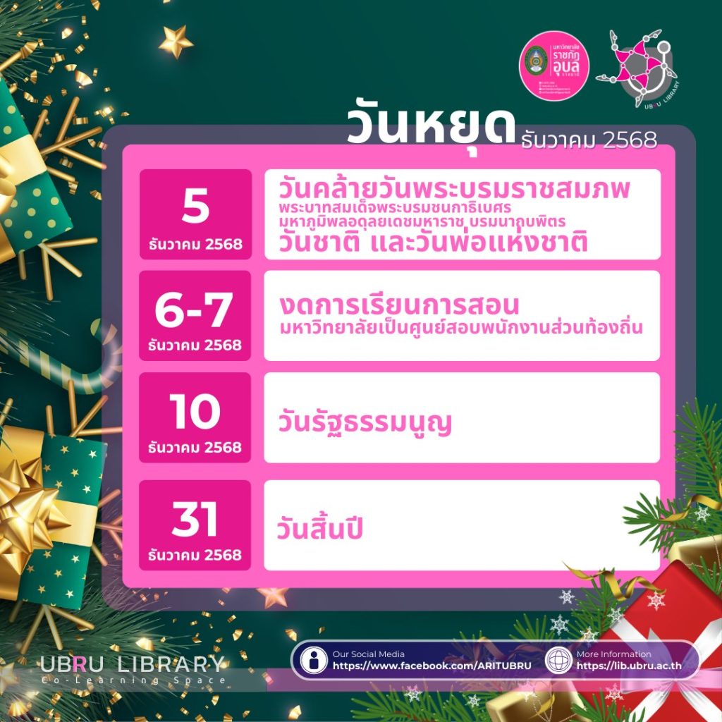 ประกาศวันหยุดสำนักวิทยบริการฯ ประจำเดือนธันวาคม 2568