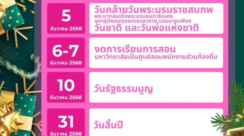 ประกาศวันหยุดสำนักวิทยบริการฯ ประจำเดือนธันวาคม 2568 รายละเอียดเพิ่มเติม Recent Posts