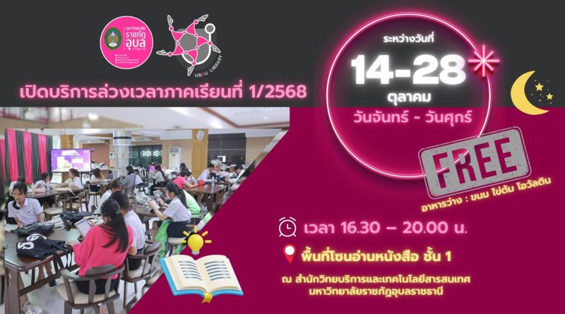 วันที่ ๒๙ ตุลาคม ๒๕๖๘ ______________________________ ผู้บริหารและบุคลากรสำนักวิทยบริการและเทคโนโลยีสารสนเทศ ร่วมพิธีเจริญพระพุทธมนต์สมโภชองค์กฐินสามัคคี ประจำปีพุทธศักราช ๒๕๖๘ และจัดซุ้มอาหารโรงทาน ณ อาคารปฏิบัติการส่งเสริมคุณธรรมและจริยธรรม มหาวิทยาลัยราชภัฏอุบลราชธานี รายละเอียดเพิ่มเติม Recent Posts