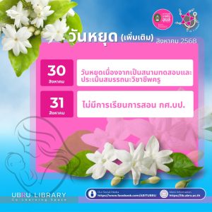 ๒๙ กันยายน ๒๕๖๘ ————————————— ผู้บริหารและบุคลากรสำนักวิทยบริการฯเข้าร่วมงาน “วันกตัญญุตาอาจารย์ประสิทธิ์ สุนทโรทก” และผ้าป่าสามัคคีรวมรุ่นสมทบทุนการศึกษา มหาวิทยาลัยราชภัฏอุบลราชธานีและ พิธีทำบุญตักบาตรพระสงฆ์ ๗๘ รูป 📍ณ บริเวณลานอนุสาวรีย์อาจารย์ประสิทธิ์ สุนทโรทก มหาวิทยาลัยราชภัฏอุบลราชธานี รายละเอียดเพิ่มเติม Recent Posts