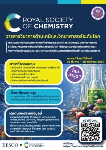 📢📚 ข่าวดีสำหรับสายวิจัยและการเรียนรู้! ______________________________ สำนักวิทยบริการและเทคโนโลยีสารสนเทศ ขอประชาสัมพันธ์การเปิดทดลองใช้งานฐานข้อมูลวารสารระดับนานาชาติ จาก Royal Society of Chemistry (RSC) ✨ 📖 ครอบคลุมเนื้อหาด้าน เคมี • วัสดุศาสตร์ • นาโนเทคโนโลยี